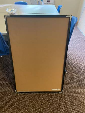 We no longer have a use for this magnetic in/out board with a whiteboard face. It is clean with no dry erase marker stains and no holes. It measures 24" wide by 36" tall and comes with 15 magnetic name pieces that have a whiteboard face so you can reuse them. It does not have the black magnetic circles that would be used to show the in/out and return time status, but I'm sure those would be easy to find and not too expensive. This item sells new for about $190 on Amazon, but we are selling it for $50 cash.