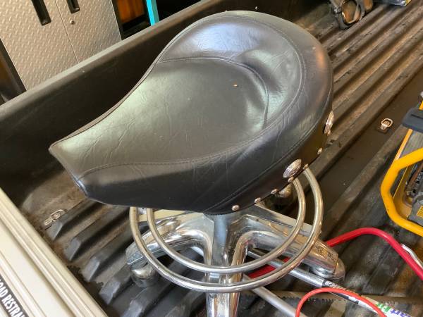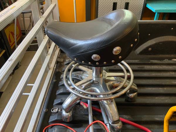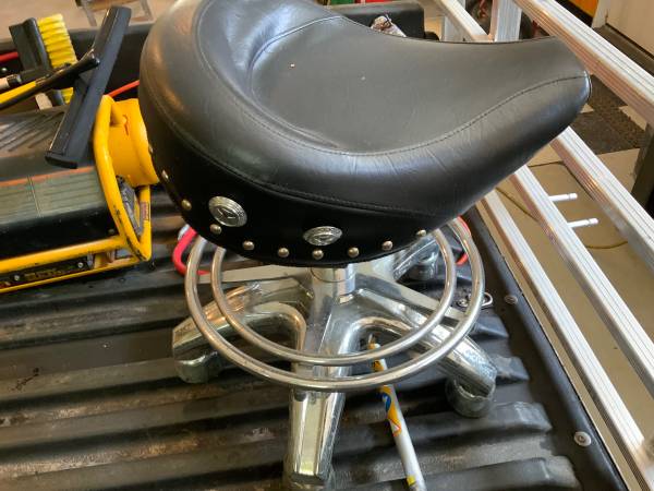 Mechanics shop stool with adjustable height for seated work. Adjustable from 23 inches to 33 inches. Quick adjustment lever and shop stool rolls across floor for ease of work. New was $300. Works...
