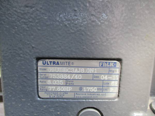 The Falk Ultramite UC Helical size 09 gear drive is a type of concentric inline gear drive that is built for longer service life. It has an integral high-speed pinion that is fully supported by bearings within the gearbox, not by motor bearings, while dual lip seals prevent contamination. Ultramite is motor-independent allowing the use of standard NEMA C-face or IEC motors. The innovative motor bushing eliminates fretting between the motor and the gear drive. This design offers easy installation and allows for quick, trouble-free change out, even after years of hard, continuous use. Falk Ultramite Gearmotors have continuous-duty ratings from the American Gear Manufacturers Association (AGMA).