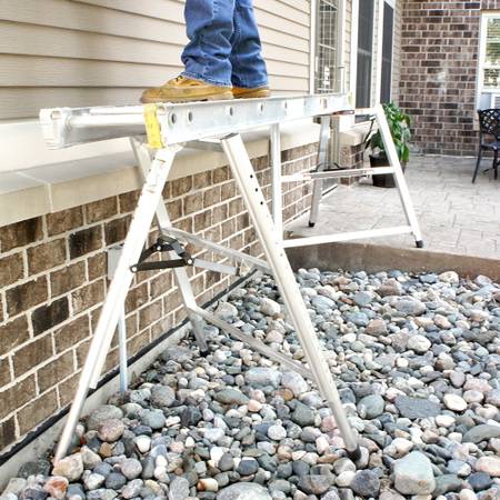 The extra-wide frame (up to 42-inch) base spread) and tapered tripod provide unmatched stability and easy platform access. The Bronco weighs only 16 pounds and folds flat for easy storage and transport. No matter the project—siding, roofing, painting, windows, or masonry work—the Bronco will keep you stable on any terrain.
