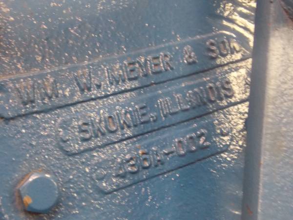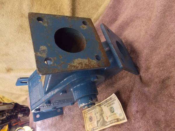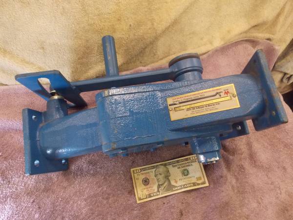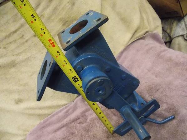 This Brand New Wm. W. Meyer & Son Industrial production Company Product Diverting Valve Unit Came from a Business Closing sale and everything had to sell. We knew the value of this High Quality Industrial Cast Iron Diverter Valve( so our savings will be passed onto you)( we were told it was over $2000.00 new) It has 2 inch Diameter Product feed Holes and the Flap Valve mover easily with the move of the arm and it locks down with the lock lever. The bolt holes for mounting to the 2" openings is 4-1/4" diagonal center to center. The entire unit is 16" Tall and weighs 42 Lbs. This New Cast Iron Manual Working Flapper Valve has some part numbers 436A-002 and 174695 on it. Call (952)854-5 seven eight six