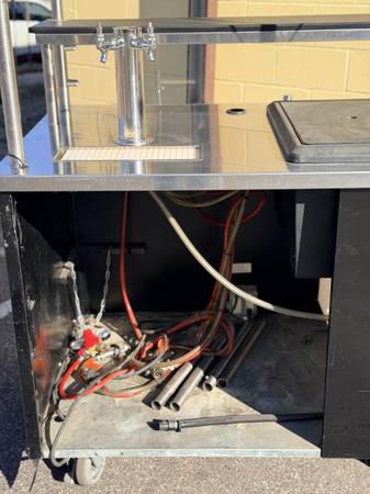 Mobile draft cart with integrated ice-down coils, ideal for off-site events, beer gardens, or mobile service programs. This unit operates without external refrigeration or power for its cooling system and is built for mobility and convenience.