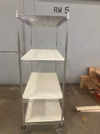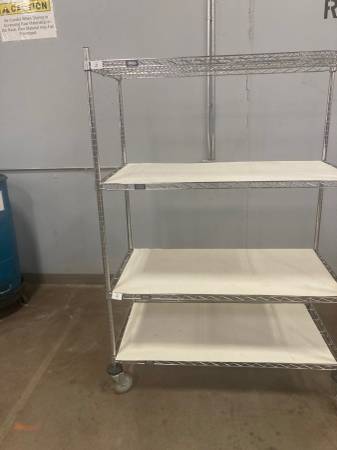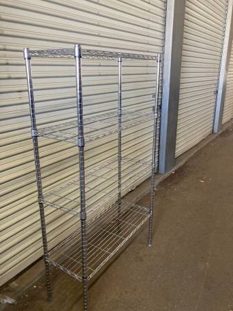 Stainless Steel Wire Shelving (Metro/Eagle/U-Line) NSF Restaurant Grade. We have many units available, different size shelves, such as (18 x 36, 18 x 48, 18 x 60, 24 x 48, 24 x 60) priced at $15 each for the smaller size shelves and $20 each for the larger size shelves (24 deep or 60 long). Posts are mostly 75" high and priced at $15 each. So for the smaller size units with 4 shelves and 4 posts and clips the price is $120, for the larger size $140. If you desire wheels, add $20 per unit (only smaller size wheels available now). We have plastic (NSF) sheet overlay for the shelves if you wish for $5 each. All of these shelves, posts, and clips are in like new condition. All units are dissembled and will fit in almost any vehicle. We are happy to load all customers.