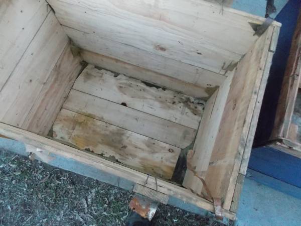 ((Update, Only the plain wood one on the Left is still here for sale))Price is each, but you must buy them all(OK, only 2 box Boxes left). The super heavy duty blue ones are 28" wide x 25" deep and 24" tall. The bare wood one is 31" x 19" x 24" tall .A Fork Lift or pallet jack will go under these for easy moving around. We found the wood lids for the (2) blue ones also. The Blue ones are so tuff they could be thrown off a loading dock and not be hurt. The pieces inside the blue wooden ones can be removed to make them one open inside. It would cost over $400 for parts and labor to make these box units. Call (952)854-5 seven eight six.