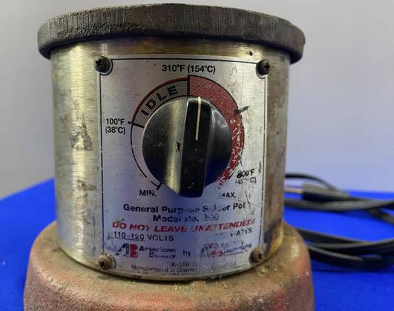 AMERICAN BEAUTY 300 GENERAL PURPOSE SOLDER POT,110-120 V,ITEM IS USED,ITEM DOES HEAT UP,TEMPERATURE NOT TESTED,YOU ARE PURCHASING ONLY WHAT IS PICTURED,PLEASE REVIEW PICTURES CAREFULLY