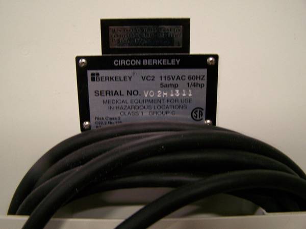 CIRCON CABOT BERKELEY VC II / BERKELEY VC-2,SN V02H1311,VACUUM CURETTAGE SYSTEM (PUMP) 115V,60 HZ,5 AMP,1/4 HP,"PULL ON" & "VACUUM ADJUST" PULL/TURN KNOBS ON TOP OF UNIT,VACUUM "CM OF MERCURY"GAUGE (0-76)