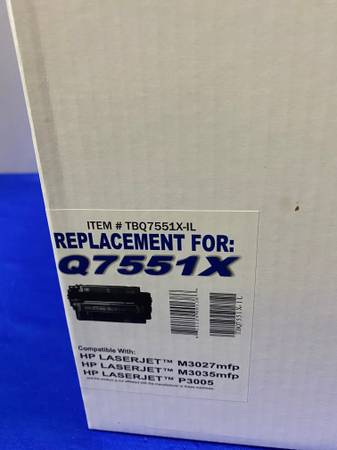 COMPATIBLE TONER CARTRIDGE TBQ7551X-IL / REPLACEMENT FOR Q7551X,ITEM IS IN UNOPENED ORIGINAL PACKAGE,YOU ARE PURCHASING ONLY WHAT IS PICTURED,PLEASE REVIEW PICTURES CAREFULLY
