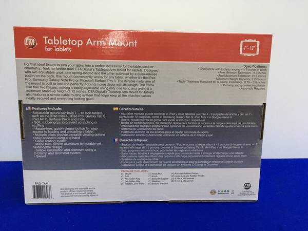 CTA DIGITAL 48XL82 TABLET TABLETOP ARM MOUNT, GRAY QTY 4 SELLING AT $25 EACH MCID 71390 - ASSIGN MCID #'S AS THESE SELL ITEM IS NEW IN ORIGINAL PACKAGING, YOU ARE PURCHASING ONLY WHAT IS PICTURED,...