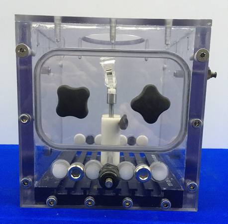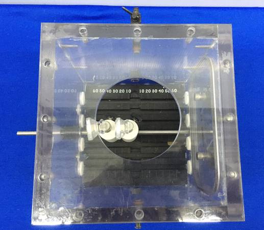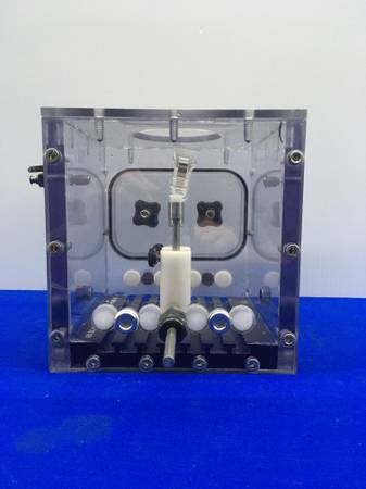 CUSTOM HOLDER FOR INERT GAS LASER WORK,APPROXIMATELY 7" X 7" X 7.25",ITEM IS USED,YOU ARE PURCHASING ONLY WHAT IS PICTURED,PLEASE REVIEW PICTURES CAREFULLY