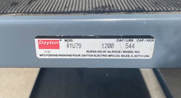 DAYTON 4YW79 LOW PROFILE INSTRUMENT CART,LIPPED AND FLUSH METAL SHELVES 36" X 24",O/D 66.5" X 30.5" X 39",CAP/LBS 1200,CAP/KGS 544,2 WHEELS SWIVEL/2 WHEELS RIGID,ITEM IS USED