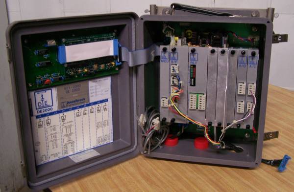 MICROPROCESSOR DEMONSTRATOR FLIP OPEN PANEL REVEALS CIRCUIT BOARDS AND WIRING DIAGRAM