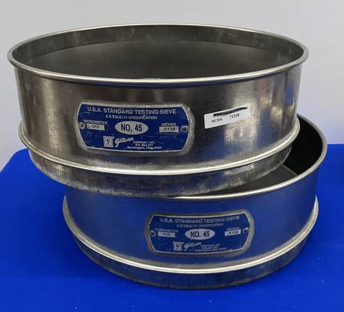 GILSON NO. 45 USA STANDARD TESTING SIEVE MICROMETER 355 .0139 INCHES ITEMS ARE USED. YOU ARE ONLY PURCHASING WHAT IS PICTURED. PLEASE REVIEW PICTURES CAREFULLY. RULER IS FOR REFERENCE ONLY AND IS...