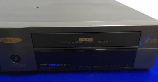 GO-VIDEO,DDV9700Z,PRO SERIES,DUAL DECK,HI-FI,MTS STEREO,AMERICHROME CIRCUITRY,QSOUND,QUASI S-VHS,PC COMPATIBLE ITEM IS USED,TESTED TO POWER UP ONLY,NO FURTHER TESTING DONE,PLEASE REVIEW PICTURES...