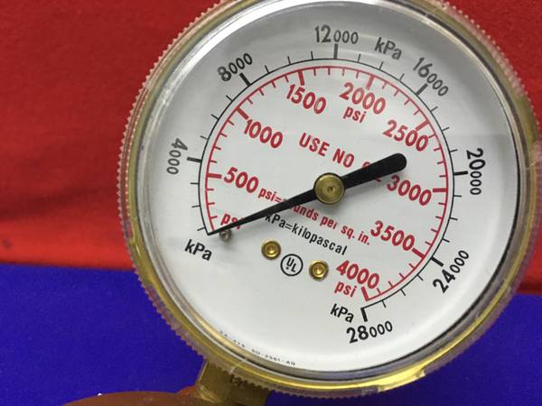 HARRIS 425-125 GAS REGULATOR,ONLY 1 GAUGE 0-4000 PSI / 1000-28000 ITEM IS USED,YOU ARE PURCHASING ONLY WHAT IS PICTURED,PLEASE REVIEW PICTURES CAREFULLY MCID 71111 PLEASE INCLUDE A PHONE NUMBER WHEN...
