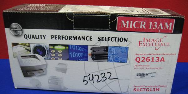 IMAGE EXCELLENCE Q2613A RE-MANUFACTURED TONER CARTRIDGE SURPLUS INVENTORY(BOX IS OPENED ITEM IS NEW IN SEALED PLASTIC BAG) MCID 54232 PLEASE INCLUDE A PHONE NUMBER WHEN RESPONDING TO AD PLEASE CHECK...