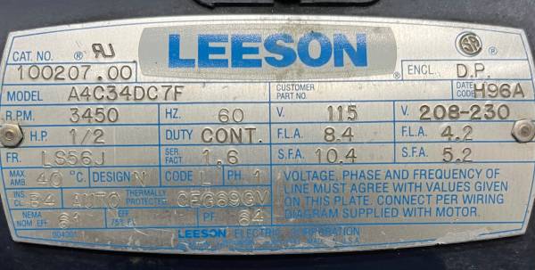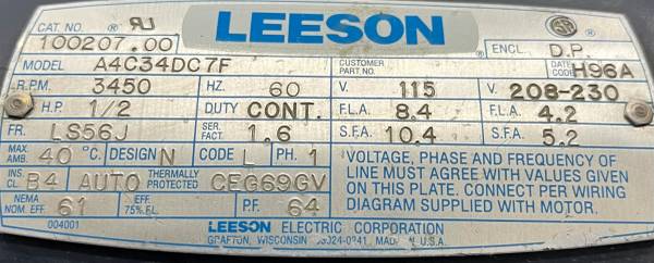 LEESON ELECTRIC A4C34DC7F / CAT NO 100207.00 MOTOR 1/2 HP GRINDING PLATFORM 5/8” SHAFT 3450 RPM 115V,ITEM IS USED/TESTED/GOOD MOTOR AND SWITCH/SHOWS COSMETIC WEAR/GRINDING WHEEL NOT INCLUDED,YOU ARE PURCHASING ONLY WHAT IS PICTURED,PLEASE REVIEW PICTURES CAREFULLY