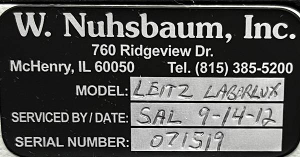LEITZ LABORLUX K BINOCULAR MICROSCOPE 02043.036 W / PERIPLAN 10X/18 519748 EYEPIECES & MPLAN 20N MPLAN10N LENS. FOR PARTS / REPAIR. MICROSCOPE NEEdS CLEANING AND POSSIBLE ADJUSTMENTS. UNABLE TO TEST CORRECTLY WITH A SLIDE. POWER SWITCH MAY NEED ADJUSTMENT SINCE BUTTON IS DIFFICULT TO TURN ON. POWER SWITCH IS EASY TO TURN OFF. UNIT SHOWS SOME COSMETIC WEAR. SN 071519.