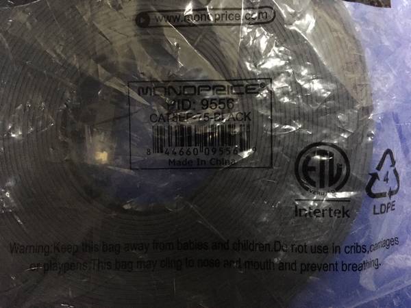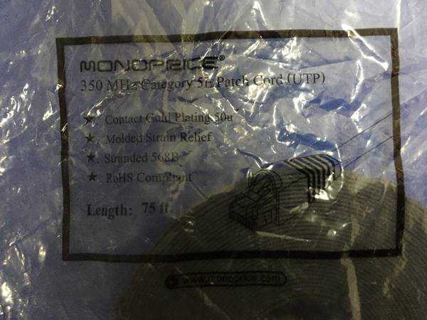 MONOPRICE PID: 9556/CAT5EF-75, BLACK ETHERNET CABLE, 75 FT.