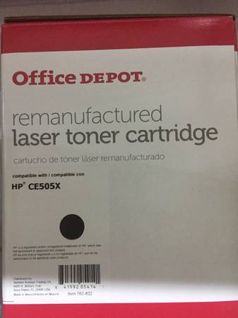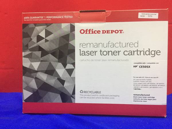 Office Depot Remanufactured Laser Toner Cartridge, Color Black, HP CE505X, For use with HP LaserJet P2055, P2055D, P2055DN, P2055X (HP 05X), Canon imageCLASS LBP-6300DN, LBP-6650DN, MF-5850DN, MF5880DN, MF5950DW, MD5960DN. Box shows some cosmetic wear, item is new