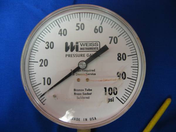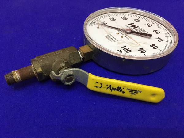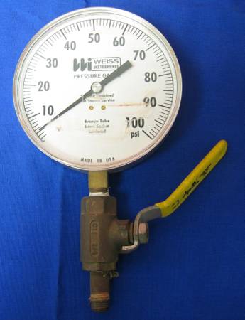 WEISS INSTRUMENTS,PRESSURE GAUGE,5" FACE,0-100 PSI WITH C11 1/4,600 WOG BALL VALVE ITEM IS USED, LENS HAS SOME SCRATCHES,YOU ARE PURCHASING ONLY WHAT IS PICTURED,PLEASE REVIEW PICTURES CAREFULLY...