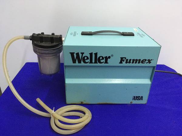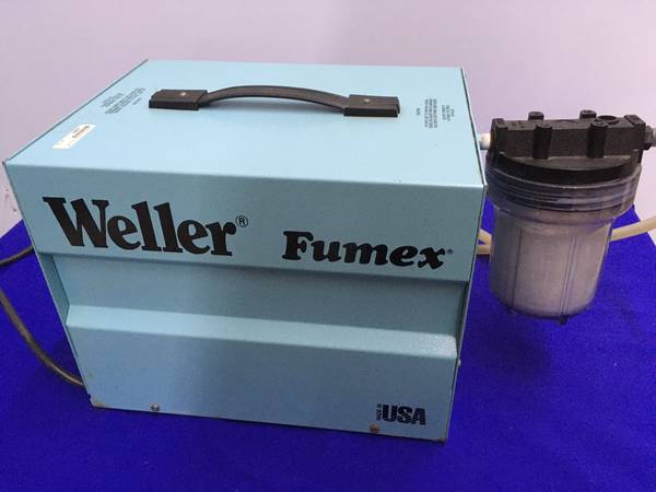 WELLER FUMEX WFE1,SN 52931523,FUME EXTRACTOR,VOLTS 115 PHASE 1,AMPS 4.2,60HZ,PLASTIC CARRYING HANDLE ITEM IS USED,POWERS UP THIS UNIT HAS A BUTTON THAT LIGHTS UP MCID 52621 PLEASE INCLUDE A PHONE...