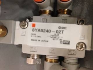 WIEGMANN ENCLOUSURE CUTOUT BOX WITH PNEUMATICS/PRESSURE GAUGES,SMC TIME DELAY VLVE-NVR2110,SMC PRESSURE GAUGE/REGULATOR 160PSI-100PSI,SMC SYA5240-0ZT 5 PORT PNEUMATIC BASE MOUNTED PILOT VALVE SMC SYA3Z40-01T 3 PORT AIR/PNEUMATIC BASE MOUNTED PILOT VALVE