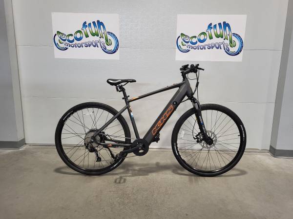 The new KHS Extended 2.0 Electric Bicycle is a lightweight smooth ride whether it be for commuting or just going for a ride. It comes in Small(shown at end of pics) and Large(shown first in pics) so we can help you find the correct fit. It comes with a Bufang 500W hub drive motor with a 48V Lithium Battery. The bike features Aluminum frame and rims along with a Shimano Altus 9 speed drive. Up front you have SR NEX Fork/Shocks and 700 Kenda Kwick Bitumen tires for a smooth ride. It has a digital display allowing you to select up to 5 pedal assist levels or when you approach a hill a thumb throttle to get you to the top. Stop up to take one for a TEST RIDE or feel free to call with any questions at 612-321-8867. Sale price does not include sales tax and dealer freight/prep. Delivery is available and we do accept cash, credit cards or can Finance it.