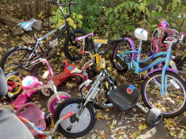 Half a dozen bicycles/tricycles for sale. Prices vary from $15-$50. See pictures.