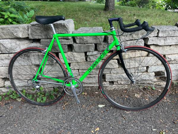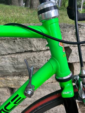 54 cm Olmo frame built with rare Columbus Mutishaped tubing and Shimano Dura-Ace 8 speed 7402 group.