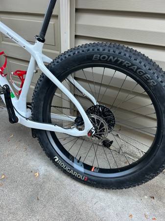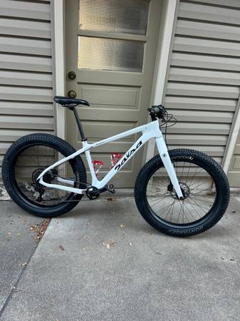 Less than 1000 miles. Well cared for. Light summer tires on it now. Including a new Set of 45Nrth Dillinger 4 winter race tires with Studs. Never been on Black top.... Studs are like new. Although a Tubeless setup with Carbon Whisky Rims, included are 2 inner tubes and a saddle bag.