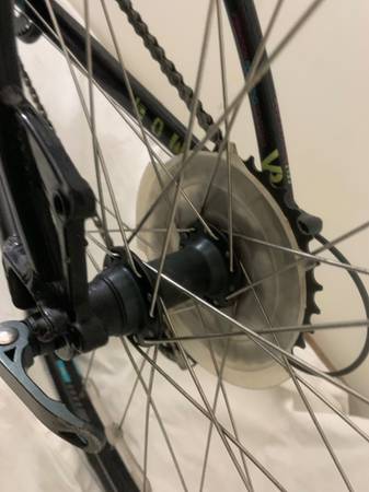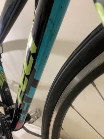 45 cm frame. 17 inch Some scratches Under the seat has paint chipping (as seen in pics) probably from lock rubbing against frame