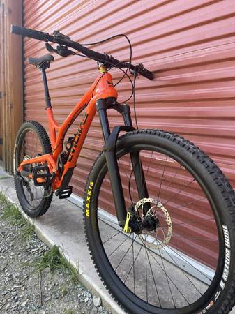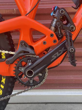 Evil Following Carbon frame XL with Fox Factory DPS rear shock. Feels like a much longer travel bike with DW suspension. Frame is in great condition with only a couple small scratches and a few superficial paint chips. Looks super clean over all. Absolutely loved this bike and handles anything in MN exceptionally well. Ive just gotten more into cross country racing and this bike doesn't fit my need as much ad I would like.