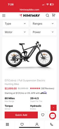 Himiway D7 Cobra 750 watt 7 speed Hub drive $1500 Lots of xtras