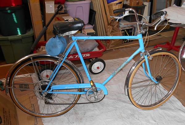 Blue Schwinn Collegiate 5 speed bike Made in Chicago 1973. 22" frame, 27" wheels. All original. Just needs some cleaning, and a bit of fine tuning. Otherwise in overall good condition.