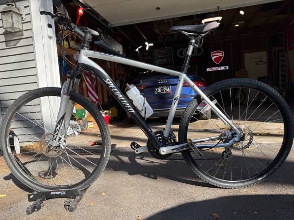 This bike has barely been used since I have a diverge competition. It great shape and fully functional. The front shocks and disc brakes make this bike very easily to handle on gravel and other terrains. I mainly want it to go to a good home. Specialized helmet included. Message me four one four nine