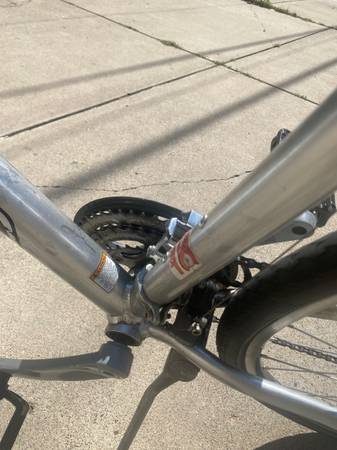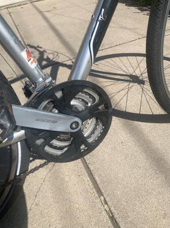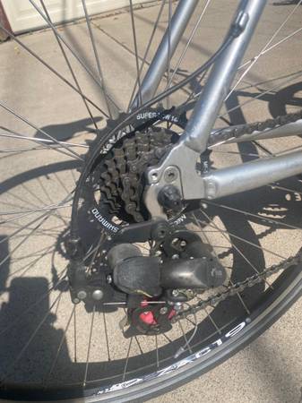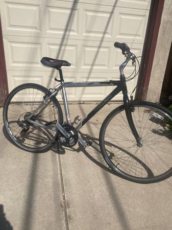 Aluminum frame, gel seat, upright riding-position. Complete tune-up, new tubes last season at Tangletown bike shop. Very good working condition, good tires. Adult size. Hybrid Cross bike