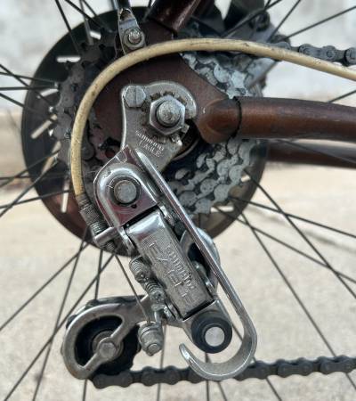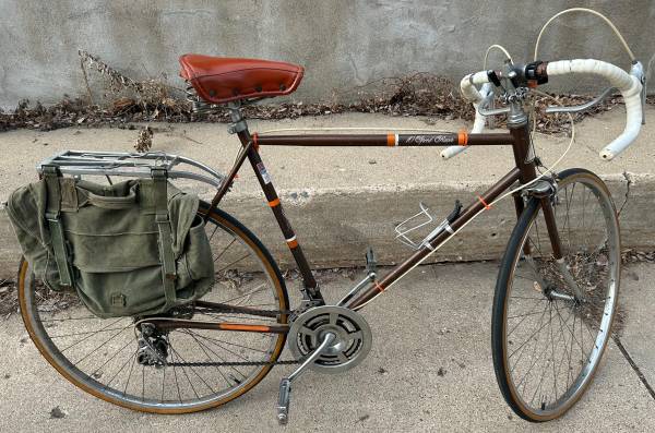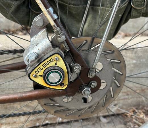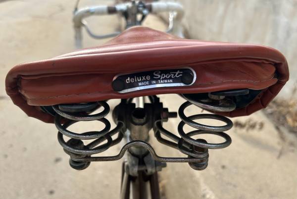 The bicycle has some customized upgrades. Along with the Shimano brake system and Shimano derailleur system, it also has a brown high-quality leather seat (with shock absorbers) and a silver luggage carrier, where I've attached an Army saddle bag on one side of the luggage carrier (I have two bags if you'd like both included).