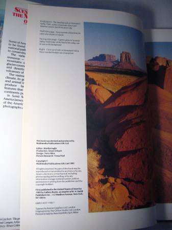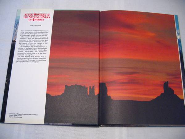 2. Scenic Wonders of the National Parks of America with dust jacket by James Murfin. Published by Gallery Books, New York, copyright 1985. The 80 page book has stunning photos from America’s national parks such as Yellowstone, the Grand Canyon and the Great Smokey Mountains.
