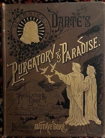 RARE! This beautiful book is translated by Gary and illustrated by Gustave Dore. The ideas begin with Dante's Divine Comedy The illustrations are horrific. The cover is in great shape. Some wear on's the cover edges of the spine and 1" separation of the cover from the book at the top and bottom of the spine. All pages firmly attached.