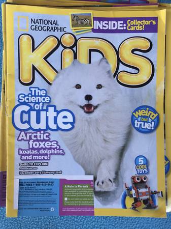 This lot of lot National Geographic Kids ranges from August 2015-March 2019 and with very little except is in great condition-only a few loose pages. There are also many un-done puzzles and even some collector cards still intact.