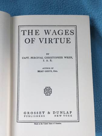 This copy of "The Wages of Virtue" is in excellent condition. No dust jacket but no writing, creased pages, lose binding, etc.