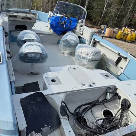 These boats are rigged for consol steering, no motor included. NO TRAILER.