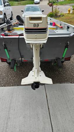 1993 Alumacraft T-14S 14 foot boat with 1985 Johnson 9.9 hp engine. In Excellent condition. Engine has fresh carb. rebuild, water pump rebuild, new spark plugs and wire. Trailer has fresh oversized...