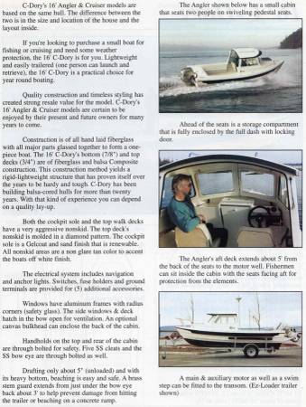 C-Dory 16 ft Cruiser. 50HP Suzuki motor with low hours. Great shape and well taken care of. Currently winterized and stored but able to be seen. EZ-Loader trailer included.