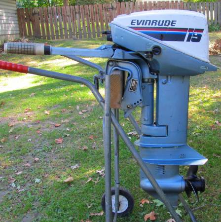 15hp Evinrude from '78. Short-shaft, tiller, twin cylinder, two-stroke, recoil start. Model 15804B. CD ignition (electronic ignition = no points) w/freshly cleaned carb, new waterpump impeller and new gear lube (old lube was water-free). Runs GREAT! Quiet, starts easily, shifts perfectly, and pumps plenty of water even when idling slow (and boy, does she troll down SLOW!). Runs out strong. Fuel tank/hose available for extra $. Stand not included.