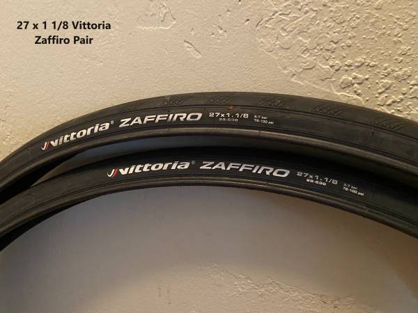 Various 700 c road and hybrid bike tires and one pair of 27 in tires for sale all are in very good to like new condition Prices at end of each description Pair 27 x 1 1/8 Vittoria Zaffiro -30 One...
