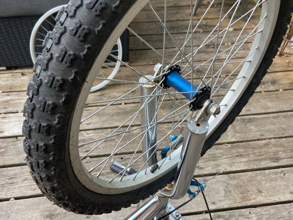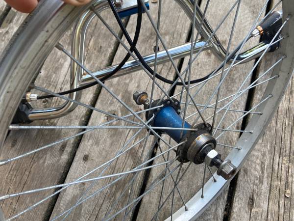 Also included is the rear wheel with matching blue hub. Unfortunately, the wheel's rim is bent.