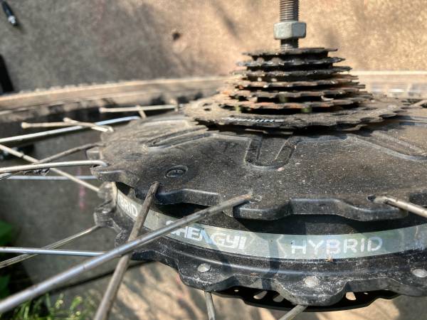 - Rear Wheel w/ Shengyi Hydrid Brushless Motor and Controller: $250 (has 6700 miles on it, but you would never know; incredible motor/wheel, have it not been for the crash, I think it would have gone another 6700, brake rotor still has a lot of life, cassette has seen better days)