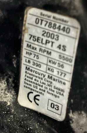 For sale a 2003 Mercury 75 Four Stroke 20” long shaft, tiller motor. This has been used in freshwater all of its life. This is set up as an electric start, tiller, power trim and tilt, long shaft motor. We have checked motor over and performed a leak down all cylinders were at less than 4% which is excellent. The leakdown test measures the percentage of air leaking past the pistons and rings. We have cleaned and synchronized the carbs, installed a new water pump impeller, lower unit pressure and vacuum tested. This will come with tiller and prop or controls and harness. This will also include an aluminum prop. This will come with a 60 day in house warranty on the rest of the motor, starting when the customer begins to use it. We will also store for free as long as needed as long as paid in full.