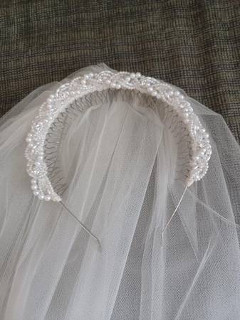 This headband-style bridal headpiece is covered with pearls. Simple and elegant. 28.5 inches long. Ivory. Cash only. Pick up only.